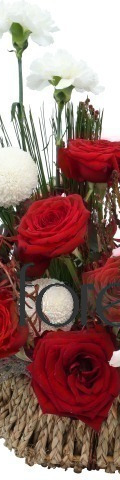 Roses are red, lilies are white, and the Art of Love Flower Basket is a stunning delight! A gorgeous gift for friends, loved ones, business associates, and employees, this artful display includes 2 white lilies, 5 red roses, 3 white carnations, 2 white pompoms, and Tenasserim pines for just a hint of lush greenery. Beautifully presented in a stylish wicker basket, it will bring a touch of natural beauty to any desktop, dinner table, or windowsill display.